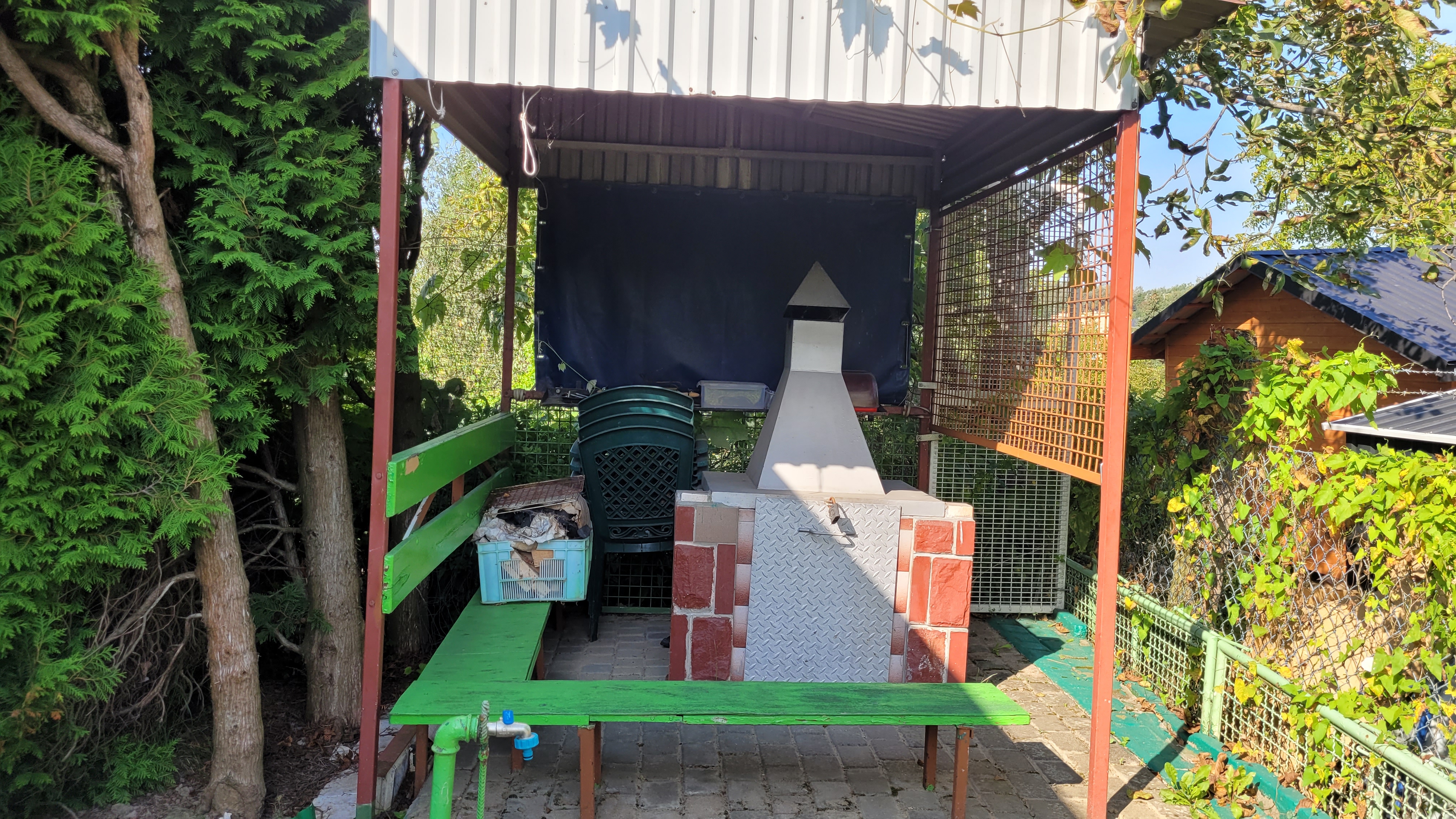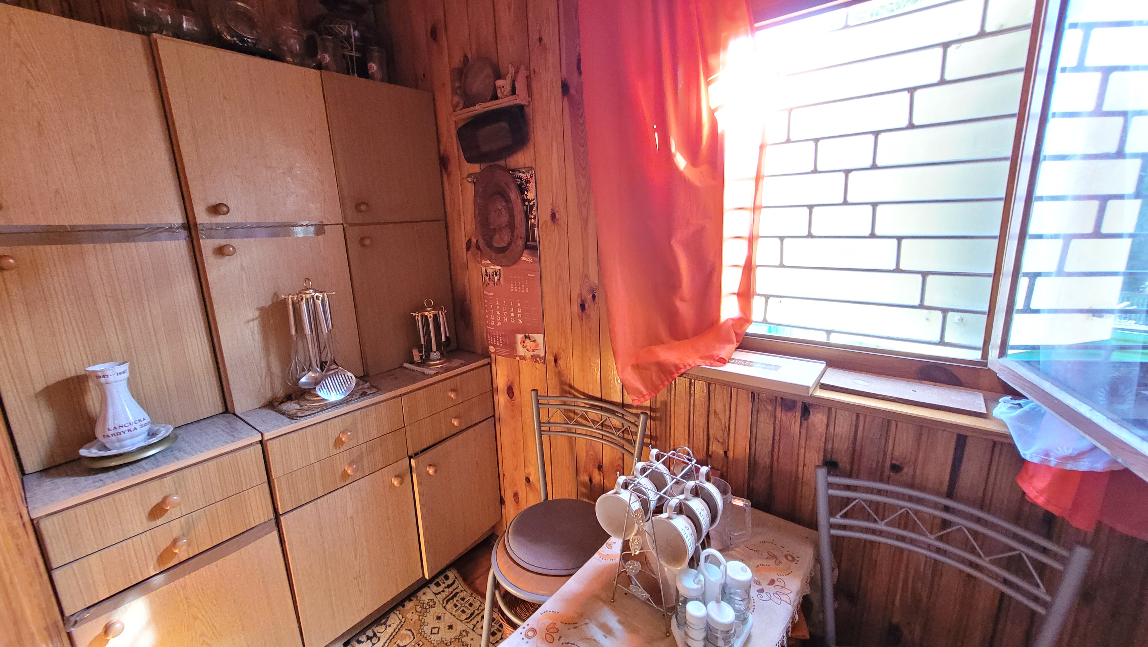Na działce woda z wodociągu, w domku instalacja elektryczna na 12 i 230 volt.