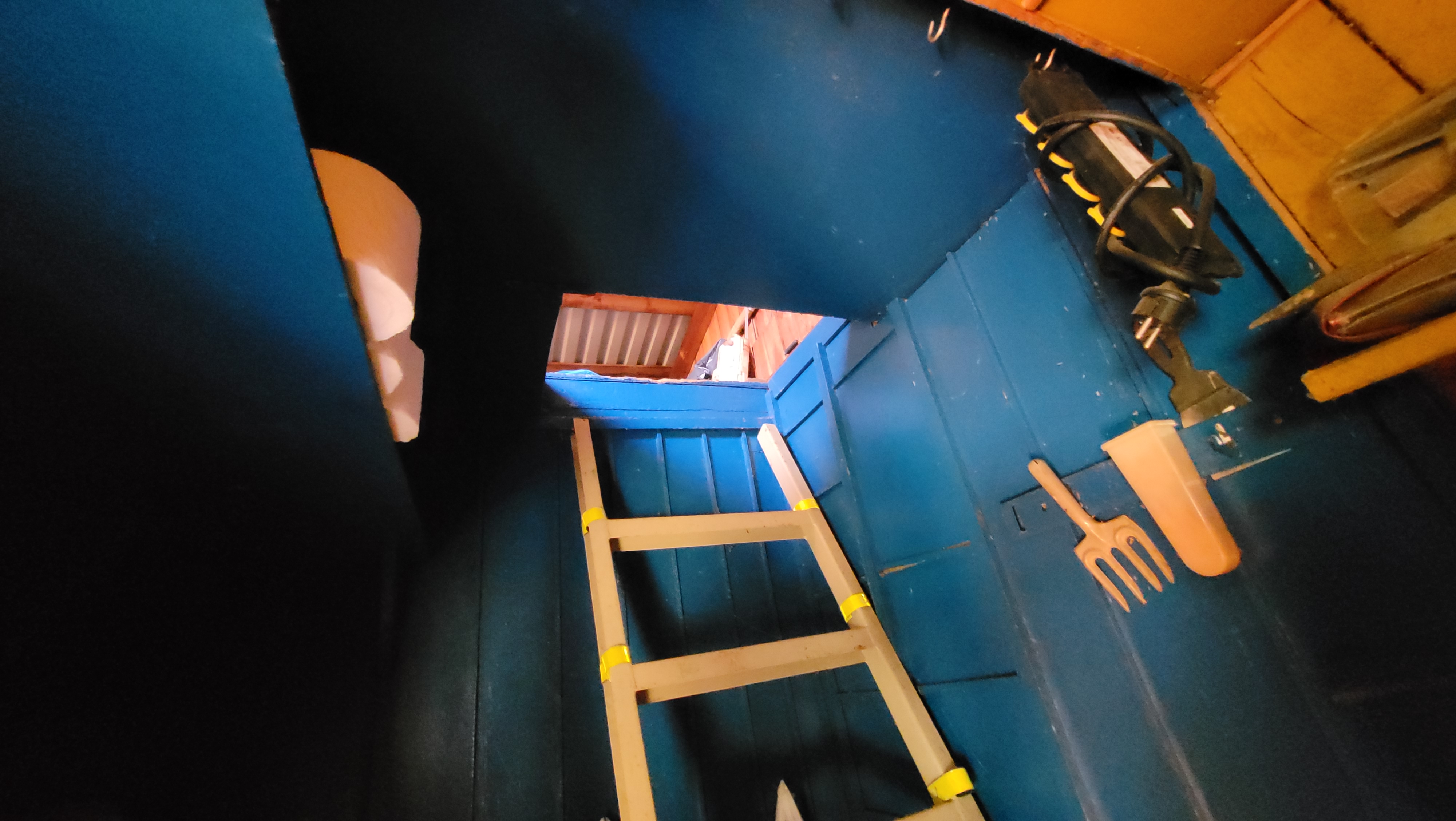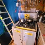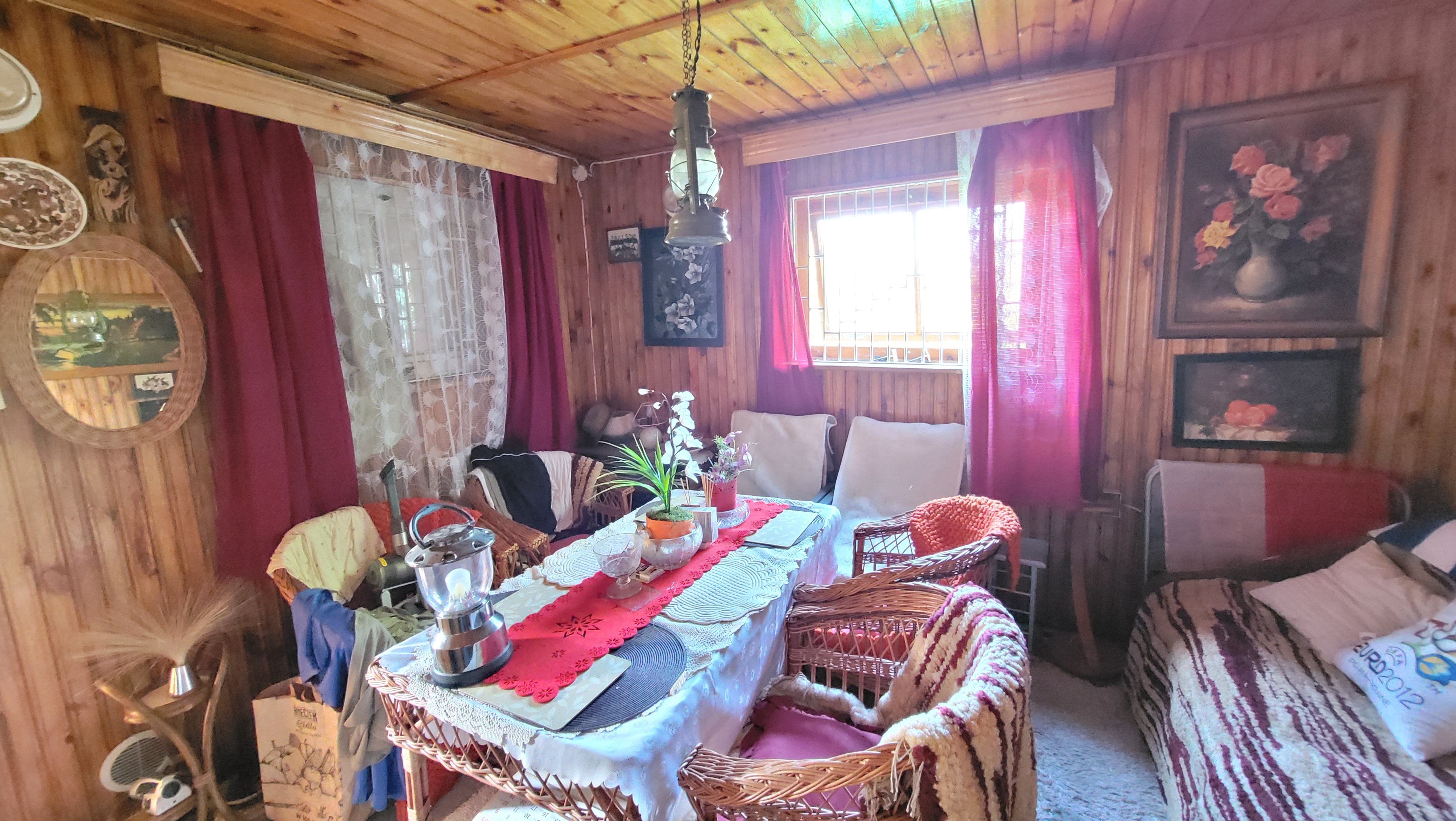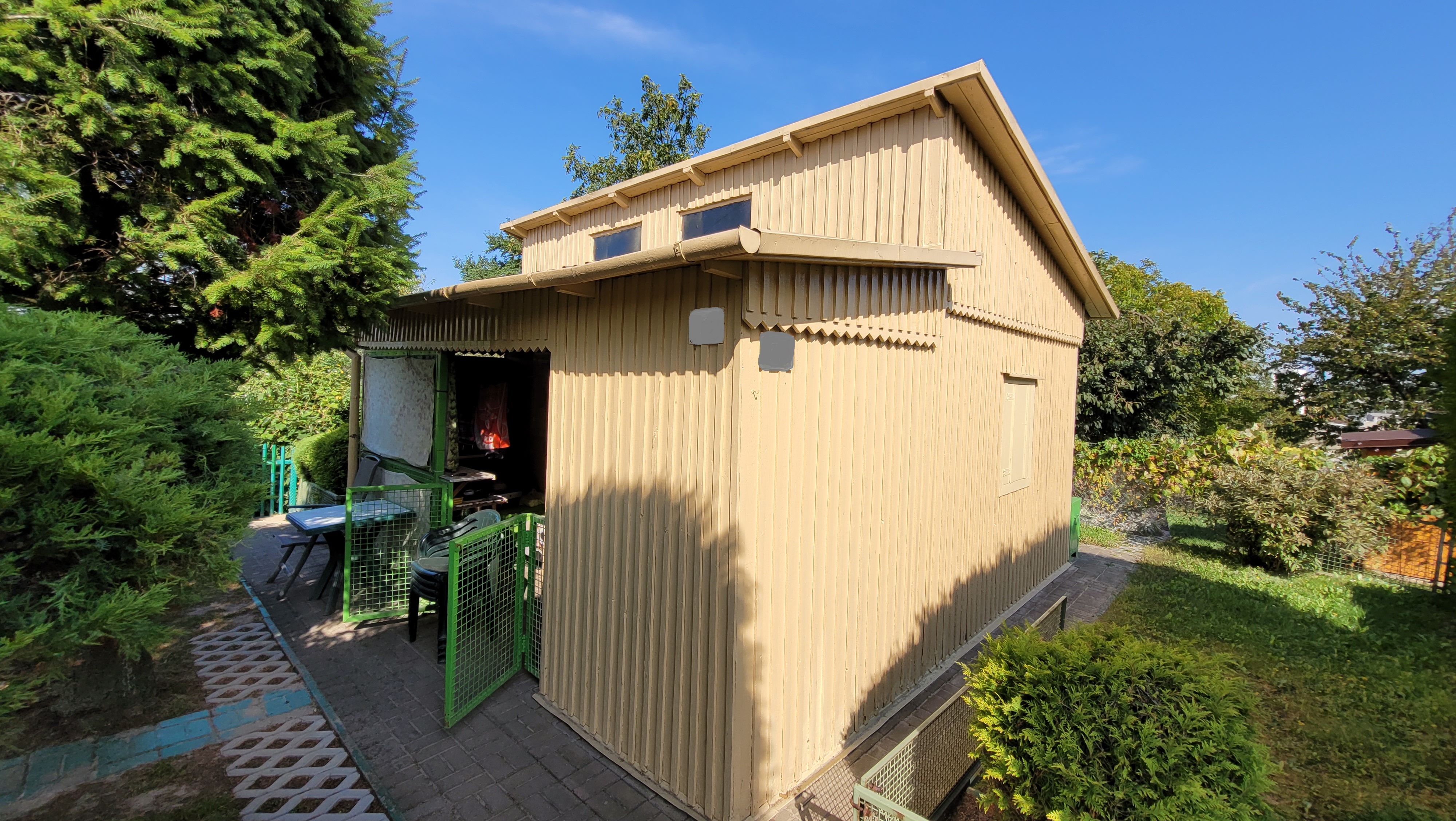 Domek rekreacyjny składa się z werandy, pokoju. kuchni, strychu i piwnicy.